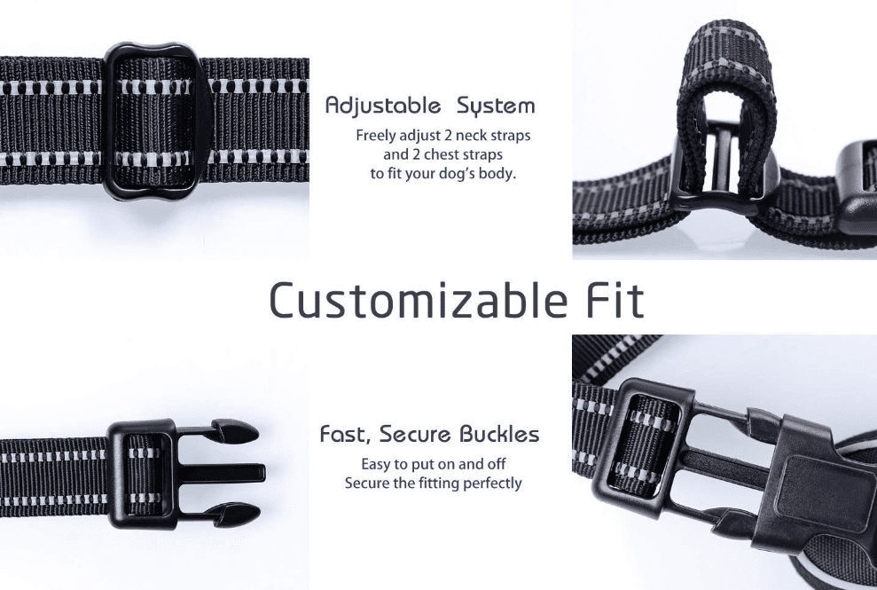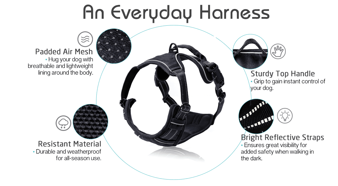 STURDY HANDLE for the Dog Harness: The rugged nylon handle further enhances your distance from the dog. And it is more intimate with each other. It is also the best partner for dogs. The dog harness is easy to control your dog.