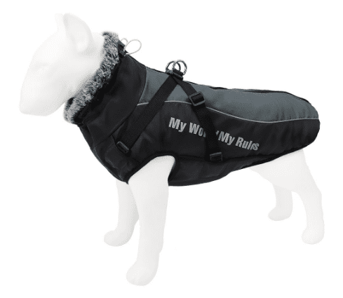 【REFLECTIVE STRIPES AND WATERPROOF MATERIAL】——Our dog winter coats coming with new upgrade bright reflective stripes, is to increase safety at night as well as fashion sense; And it is perfect for hiking and outdoor activities. The reflective pipe is for visibility in the dark adjustable. The hook & loop belly closure is for a custom fit. A waterproof Pain-Free protective zipper on the dog jacket prevents dog fur and skin from getting accidentally zipped.