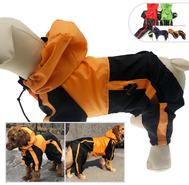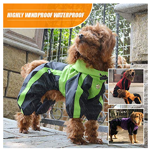 HOODIES DESIGN – Our dog raincoat is hooded design. And it will provide complete and comfortable head protection for your pet on a rainy day. Our best raincoat will keep your puppy away from colds. The dog raincoat with legs or feet provide full protection for your dogs.