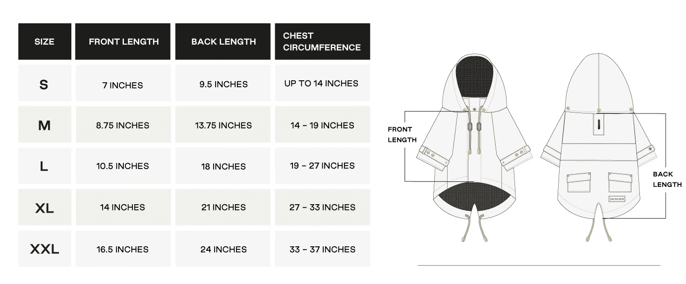 【Size Guide】For a correct fit, it is necessary to measure your dog’s body length, chest and neck in inches, and compare to the chart above. If your pet’s measurements fall between two sizes, we recommend ordering the larger of the two sizes. Please note that the raincoat runs snug since the material made is not stretchy. Only fit for small or medium dog and should add up to two inches for the chest measurements when picking their size to prevent the raincoat from being too tight.