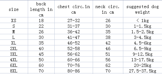 【Size Guide】For a correct fit, it is necessary to measure your dog’s body length, chest and neck in inches, and compare to the chart above. If your pet’s measurements fall between two sizes, we recommend ordering the larger of the two sizes. Please note that the raincoat runs snug since the material made is not stretchy. Only fit for small or medium dog and should add up to two inches for the chest measurements when picking their size to prevent the raincoat from being too tight.